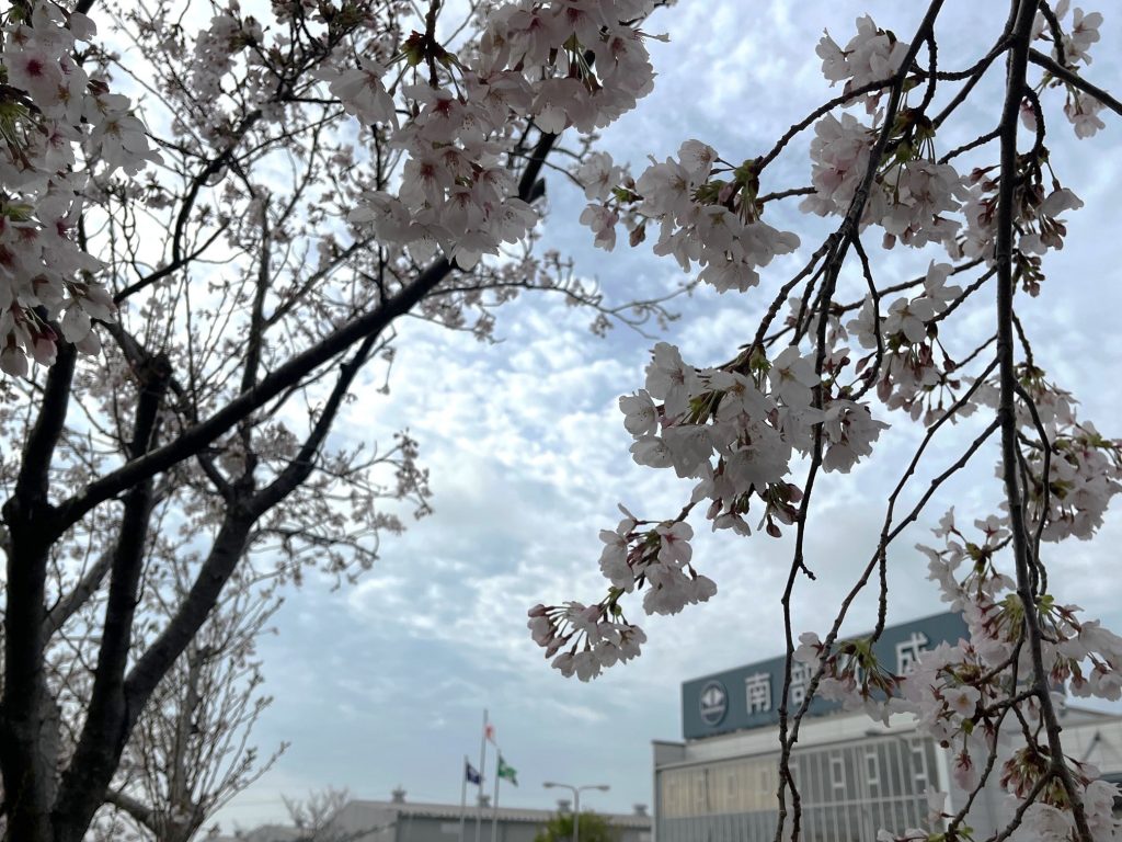 例年よりも早い時期に桜の開花予想が発表され、入社式まで花がもつのかと心配されましたが、本社敷地内の桜は新入社員の皆さんを待ってくれていたかのようなタイミングで開花し、従業員一同とともに門出を祝ってくれました。